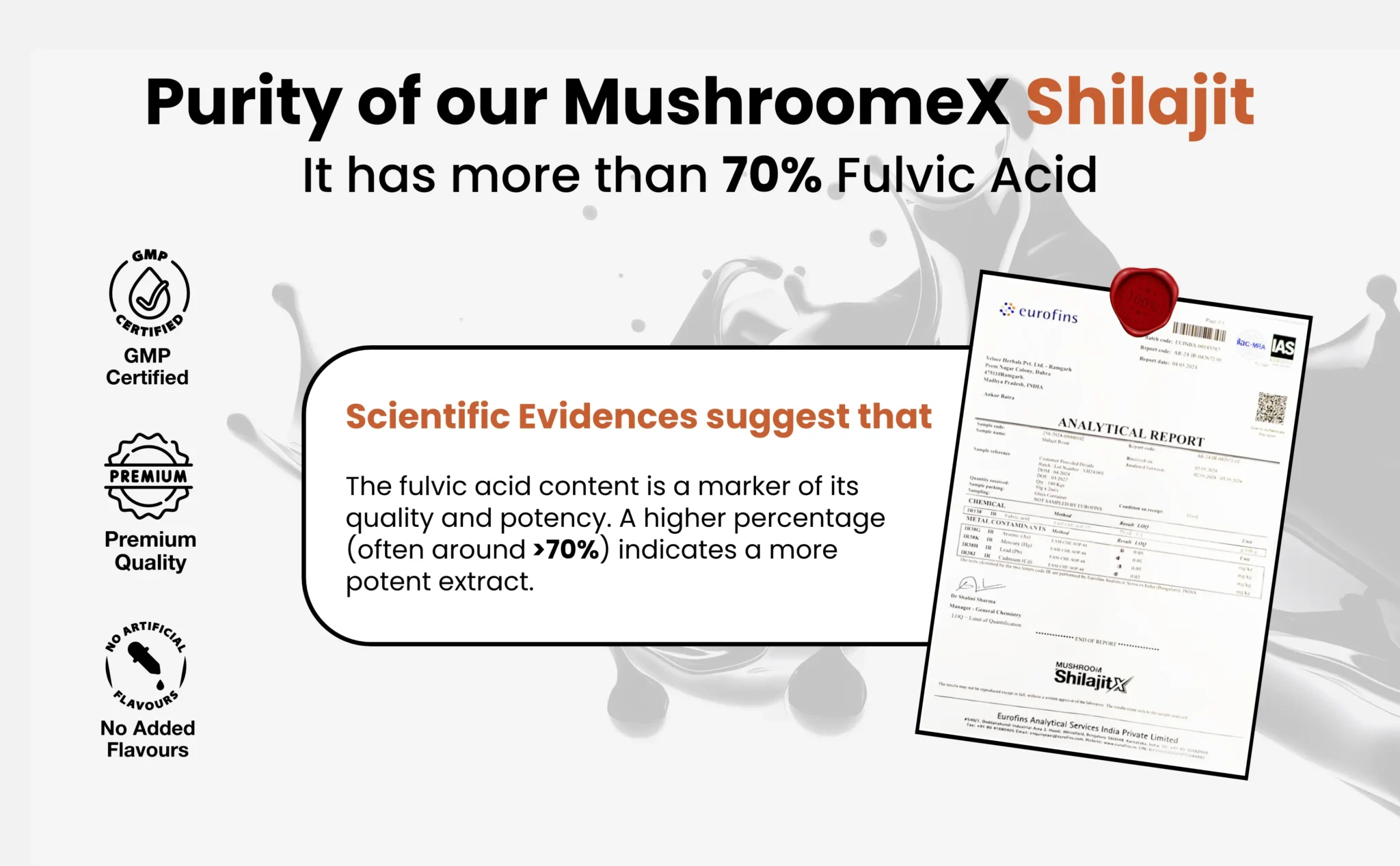 शिलाजीत राल में फुल्विक एसिड और कई तरह के खनिज होते हैं जो पारंपरिक रूप से ऊर्जा के स्तर, सहनशक्ति और ताकत को बढ़ाने के लिए जाने जाते हैं। यह अपने संभावित एंटीऑक्सीडेंट और सामान्य स्वास्थ्य-सहायक गुणों के लिए भी मूल्यवान है, जो एक स्वस्थ जीवन शैली के हिस्से के रूप में समग्र कल्याण में योगदान देता है।