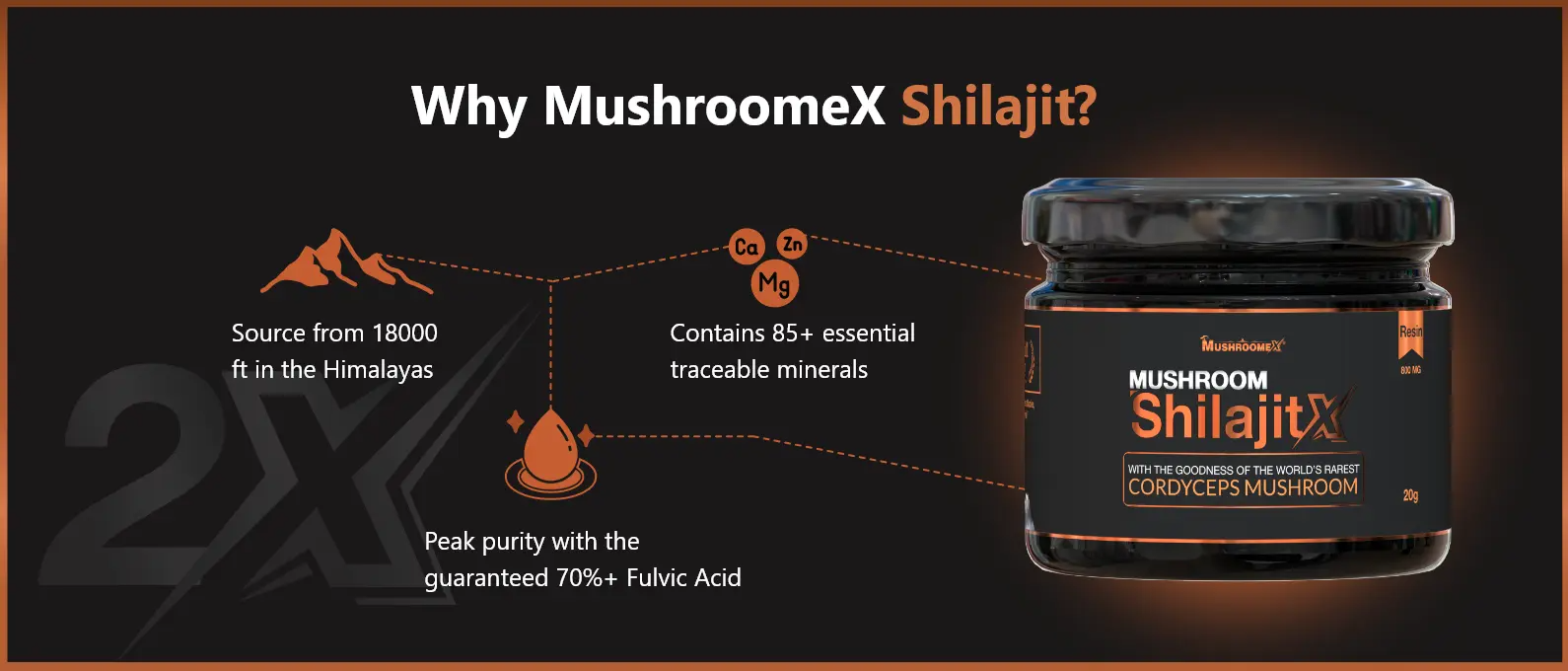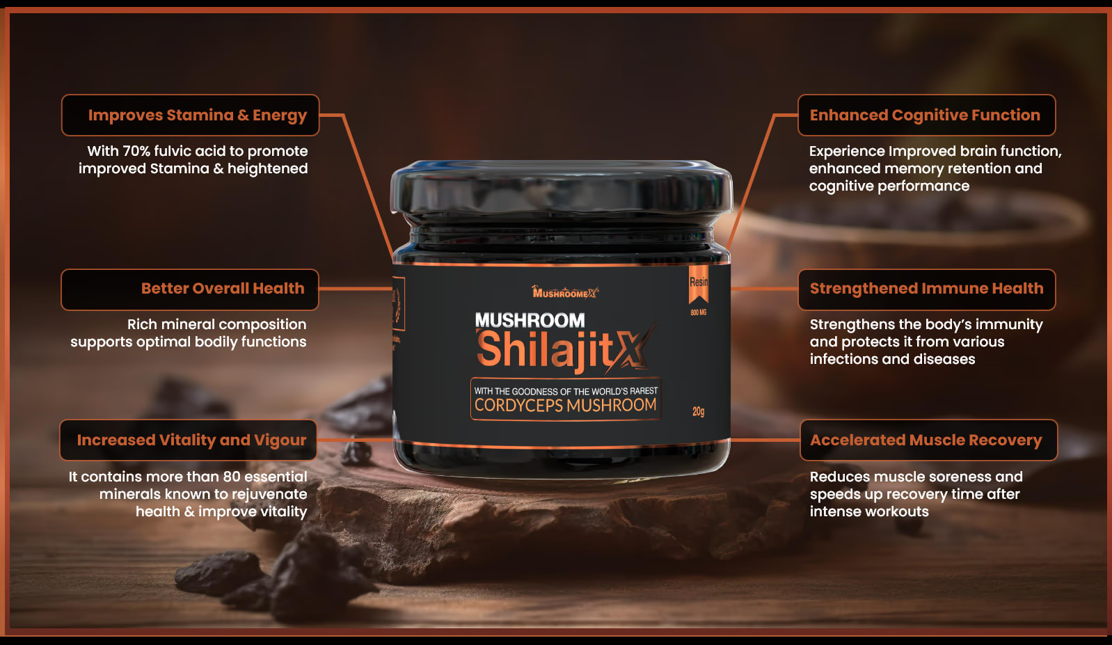 शिलाजीतX कॉर्डिसेप्स मशरूम के साथ